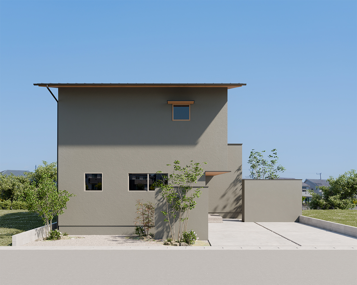 二世帯の程よい距離感を保ちながら、庭やバルコニーなどの外部空間とゆるやかにつながる動線計画です。各世帯がそれぞれの時間を大切にしつつ、必要なときには自然に交流できるよう配慮しました。内と外、家族同士の距離感を意識した設計で、暮らしに心地よい余白とつながりを生み出します。