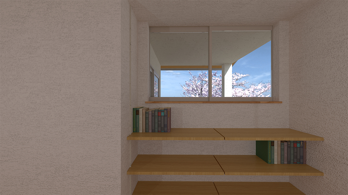 インナーバルコニーから望む、隣接する公園の桜。外に大きく開くのではなく、景色を切り取る。暮らしの中にそっと季節を愉しむ時間を創り出しました。限られた条件の中で、何を優先し、何を削ぎ落とすか。ご夫婦との丁寧な対話を重ねながら選び取ったデザインや素材には、お二人らしい価値観がしっかりと息づいています。