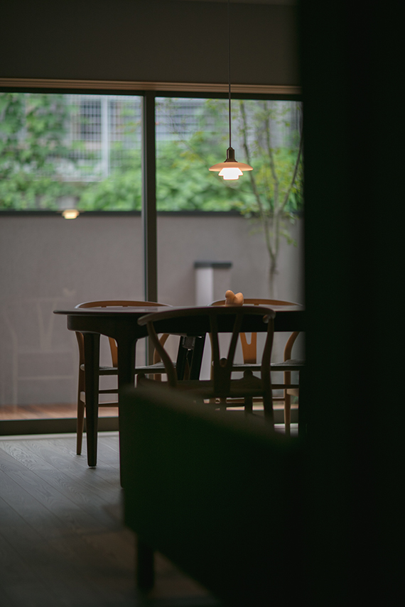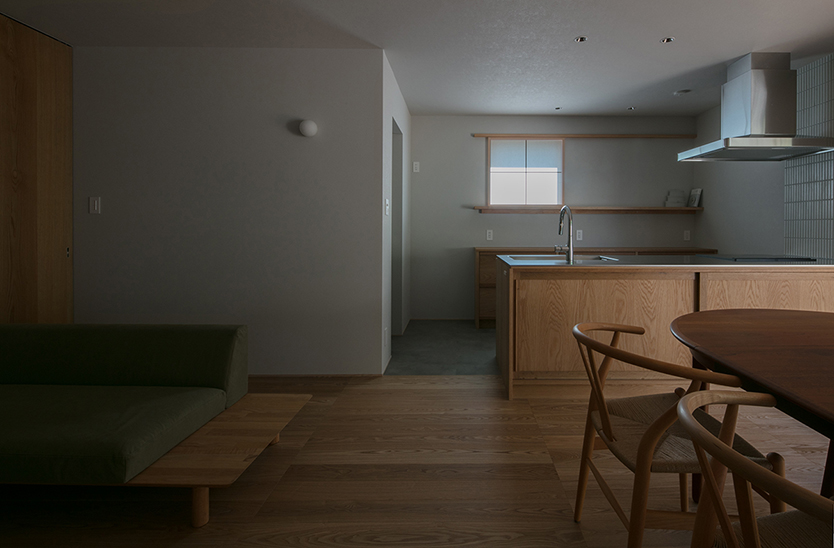 川や緑の多い⾃然豊かな住宅街での計画。忙しい⽇々を過ごす中で、リラックスする時間を⼤切にしたいというオーナーさまの思いを設計に落とし込み、丁寧に形にしたすまいです。