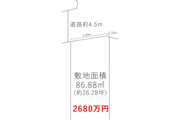土地面積:86.88㎡(約26.28坪)